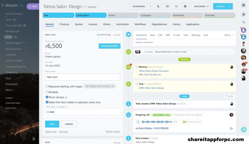 shareitappforpc – Dengan rangkaian fungsinya yang memusingkan, Bitrix24 CRM memiliki kemampuan untuk memusatkan semua komunikasi dan kolaborasi untuk organisasi dalam berbagai ukuran. Perhatian utama kami dengan layanan ini adalah bahwa fungsi-fungsinya yang sangat banyak bisa sangat banyak. Opsi untuk menambah dan menghapus fitur akan menjadi peningkatan besar, karena Anda dapat menambah dan menghapus fitur dengan Editor’s Choices Apptivo CRM, Salesforce Sales Cloud Lightning Professional, dan Zoho CRM.